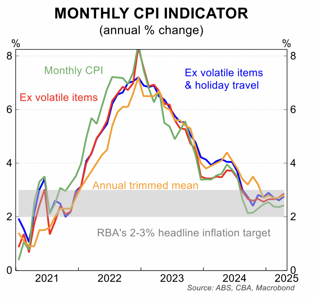 - Headline inflation edged up to 3.0 per cent in August, an upside surprise driven almost exclusively by the partial unwinding of government electricity subsidies and a rise in the excise on tobacco. The annual trimmed mean or underlying rate was well contained, easing to 2.6 per cent to effectively be in the middle of the RBA target band. The comprehensive September quarter inflation data will be released on 29 October, a week before the next RBA meeting.