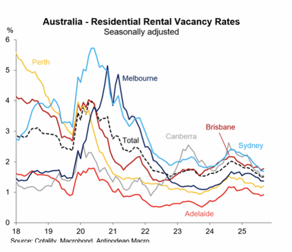 In line with the broader shortage of available dwellings, the rental market remains tight and if anything, has tightened further since early 2025. The deceleration in rents that was evident over the past two years appears to be reversing as a result.