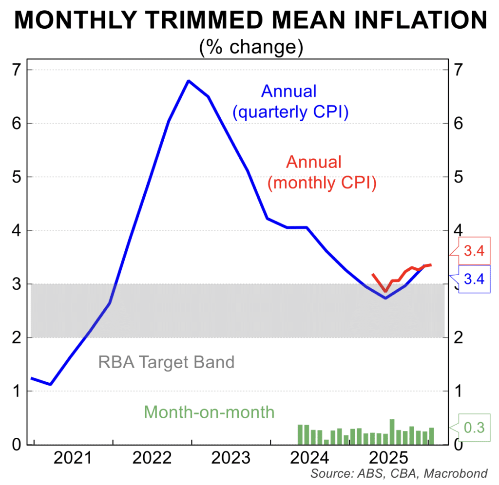 - Inflation rose 3.8 per cent in the year to January, with the trimmed mean rate edging up to 3.4 per cent. The ending of electricity subsidies, an unseasonal rise in international travel costs, housing and clothing costs added most to annual inflation. Inflation remains above the RBA target although it has signalled it would prefer to see the quarterly inflation data (next due 29 April) as the main input to its interest rate deliberations.