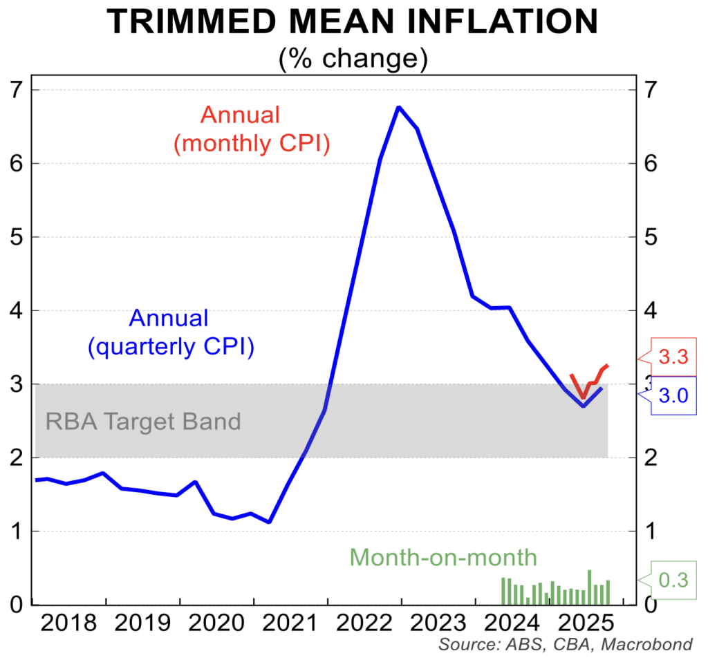 The interest rate outlook has reversed from a position where three months ago, a cash rate below 3 per cent was priced in for 2026, to one now where the outlook is for the cash rate to be hiked above 4 per cent in late 2026. The current cash rate is 3.60 per cent. The RBA has reinforced this pricing, by indicating that the risks for interest rates are towards a hike.