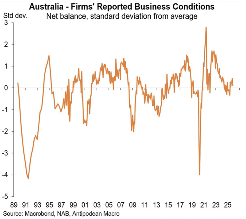 - There is only moderate news on the economy from the NAB business survey, which showed a sharp fall in business confidence and a smaller dip in business conditions in November. Inflation pressures in the business sector are well contained.