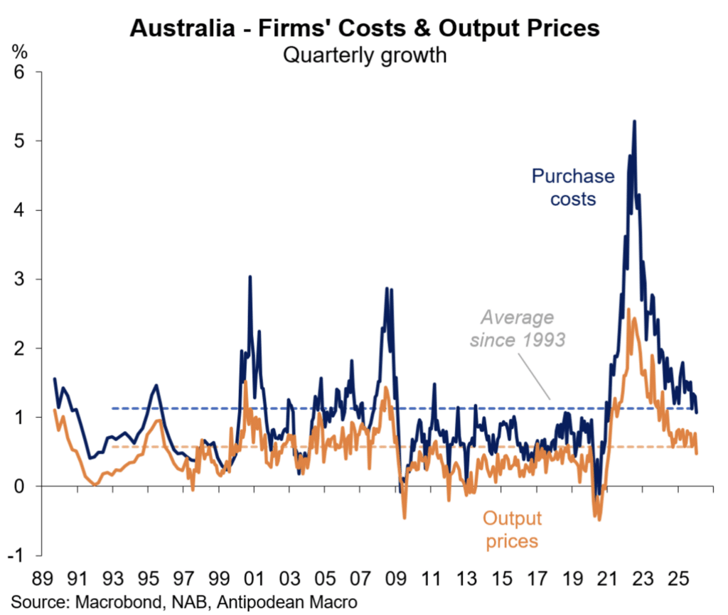 The recent volatility in the economic data is showing up in employment and the unemployment rate which, at this stage, appear to be improving after a period of weakness around the middle of 2025. House prices are rising but at a slower pace. Prices in Melbourne and Sydney are weak, but remain strong in Perth, Adelaide, Brisbane and Darwin.